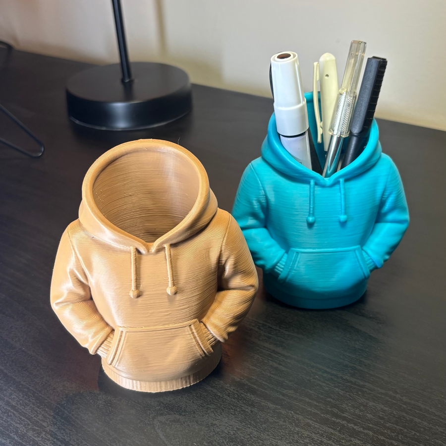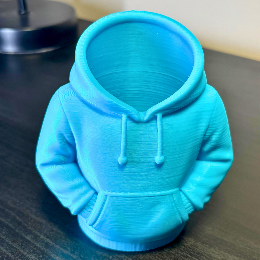 حامل أقلام مبتكر وعملي على شكل هودي رياضي باللون التركوازي الجذاب. مصنوع من البلاستيك عالي الجودة بأبعاد مثالية