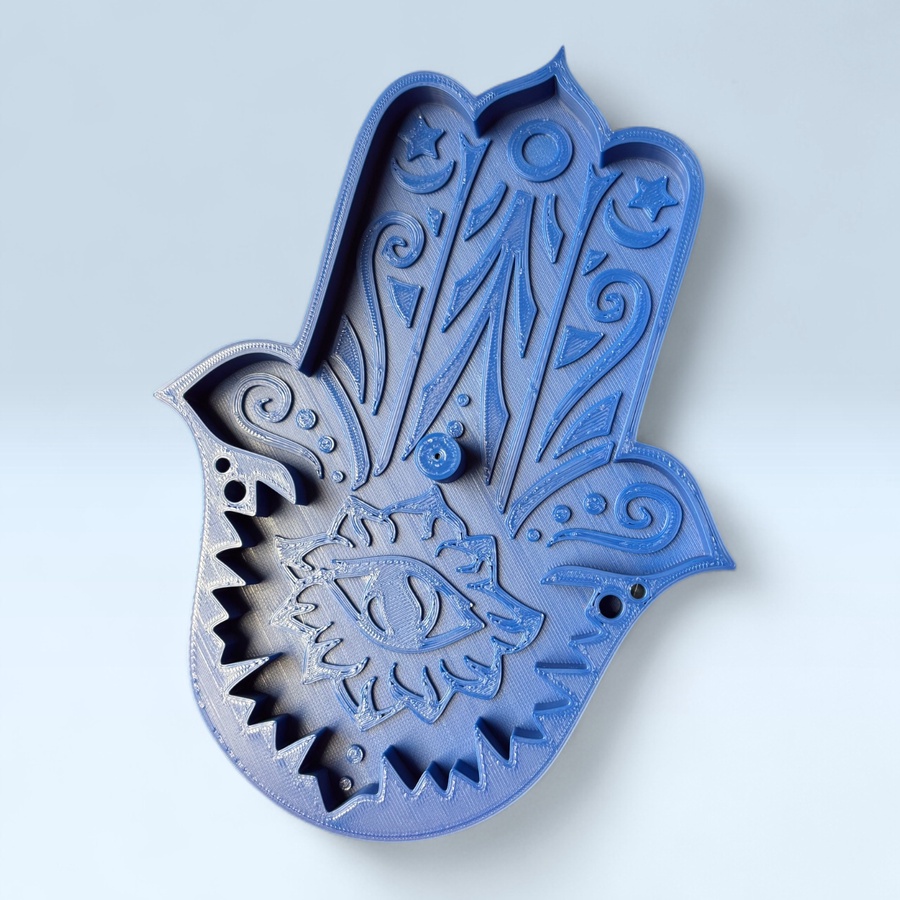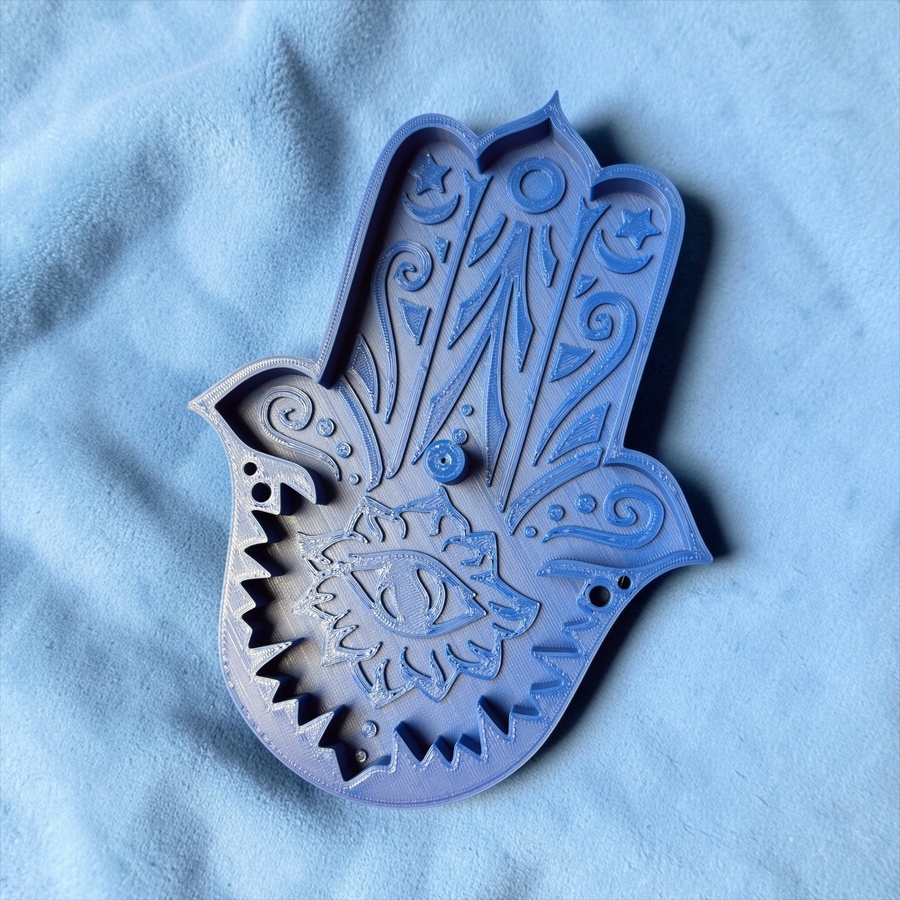 حامل بخور مصنوع من البلاستيك بتصميم مميز على شكل كف الحماية (خمسة وخميسة) مع نقوش زخرفية جميلة تضيف لمسة فنية وديكور للمكان.